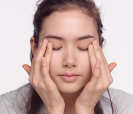 Para drenar ainda melhor a zona frágil do contorno dos olhos, repetir as pressões drenantes 5 vezes seguidas.